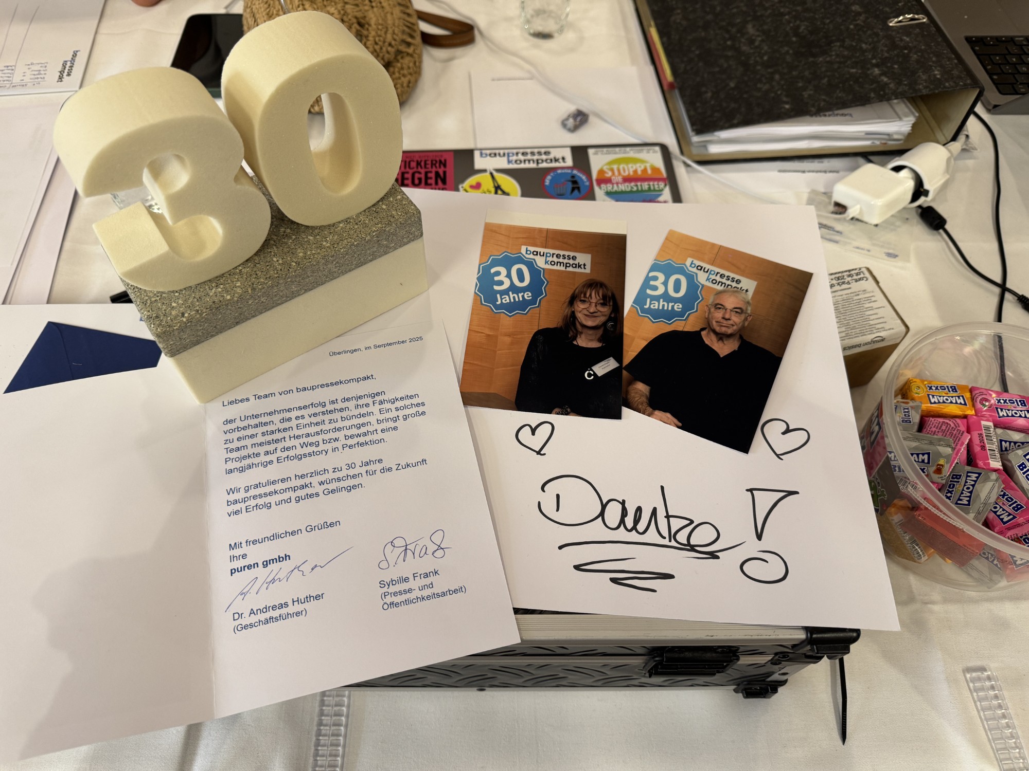 Nur noch wenige Tage, dann startet die bpk 2025 – in diesem Jahr zum 30sten Mal, und es ist die fünfte baupressekompakt unter der Leitung von Hanns-Christoph Zebe und Claudia Siegele. Grund genug, um sich darauf zu freuen und zu feiern, aber: Im Vordergrund stehen – wie in jedem Jahr – die Kommunikation und das Netzwerken. Nachfolgend ein paar wichtige Infos zum diesjährigen Programm!